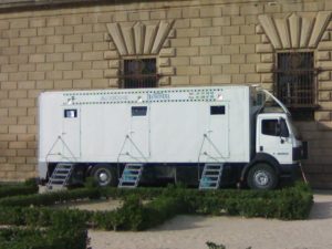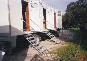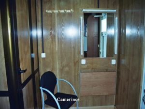 Este vehículo dispone de tres camerinos independientes. Cada uno va equipado con espejo de maquillaje, aire acondicionado, televisión, nevera, equipo de música, DVD, sillón – cama, cuarto de baño con lavabo, WC y plato de ducha con agua caliente.