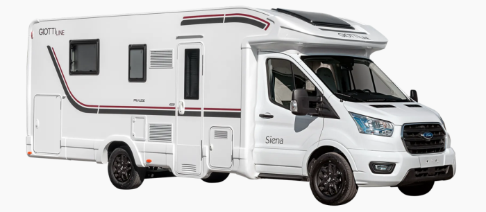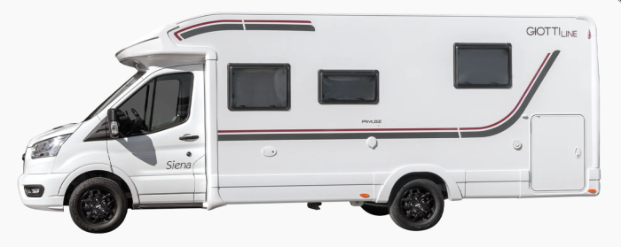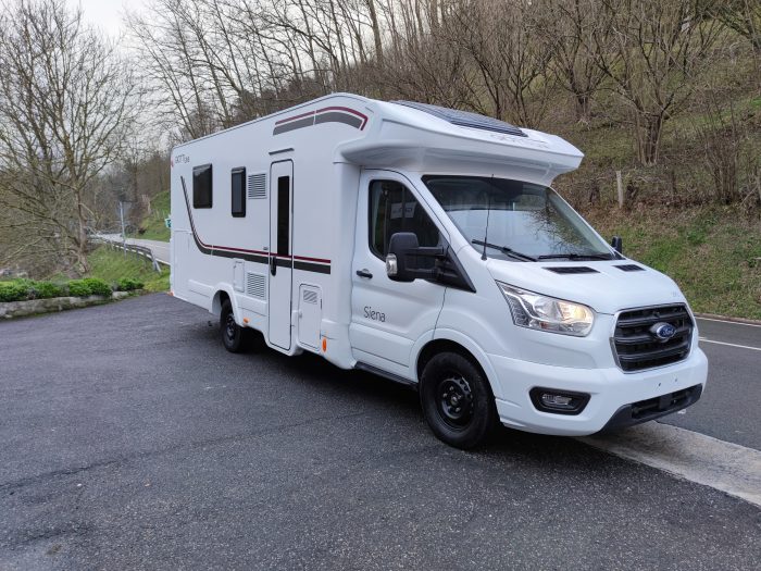 Autocaravana perfilada Siena 390, montada sobre chasis Ford Transit, con motor, 2.0 de 130CV.
